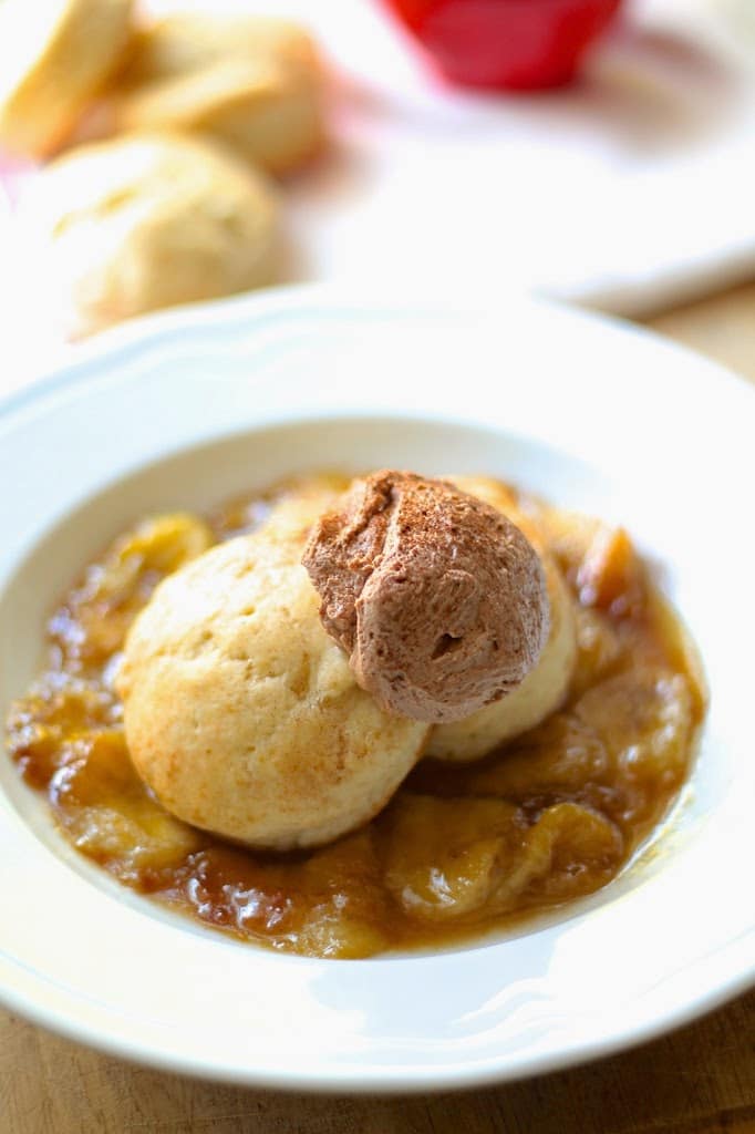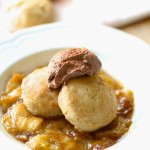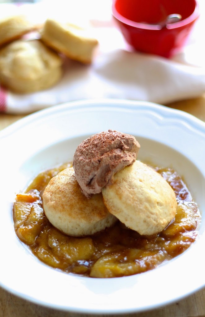 That’s how this piece of yumminess was born. I use the same biscuit recipe that I use when I make strawberry shortcakes because they’re the best I have found- no sponge cake for this girl. It’s actually a cream scone recipe from Joy of Baking and they turn out flawless every time. Dense and buttery yet somehow still light, and the perfect amount of sweetness (i.e. not too much). Definitely make extra to have with butter, jam and a cup of tea the next morning.