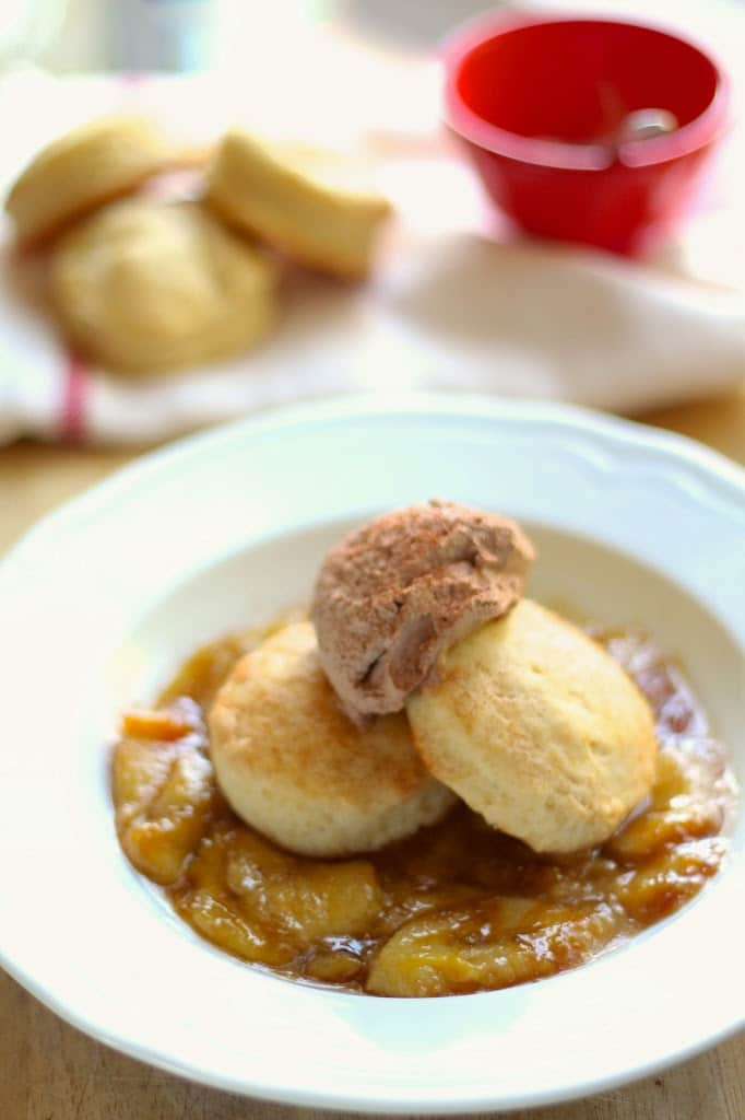 Layer it all up in a bowl or ramekin like I did, or split the biscuits and serve it up sandwich style. If you’re thinking how good this would be drizzled with warm chocolate sauce, I can tell you from experience that you’re right on the money.